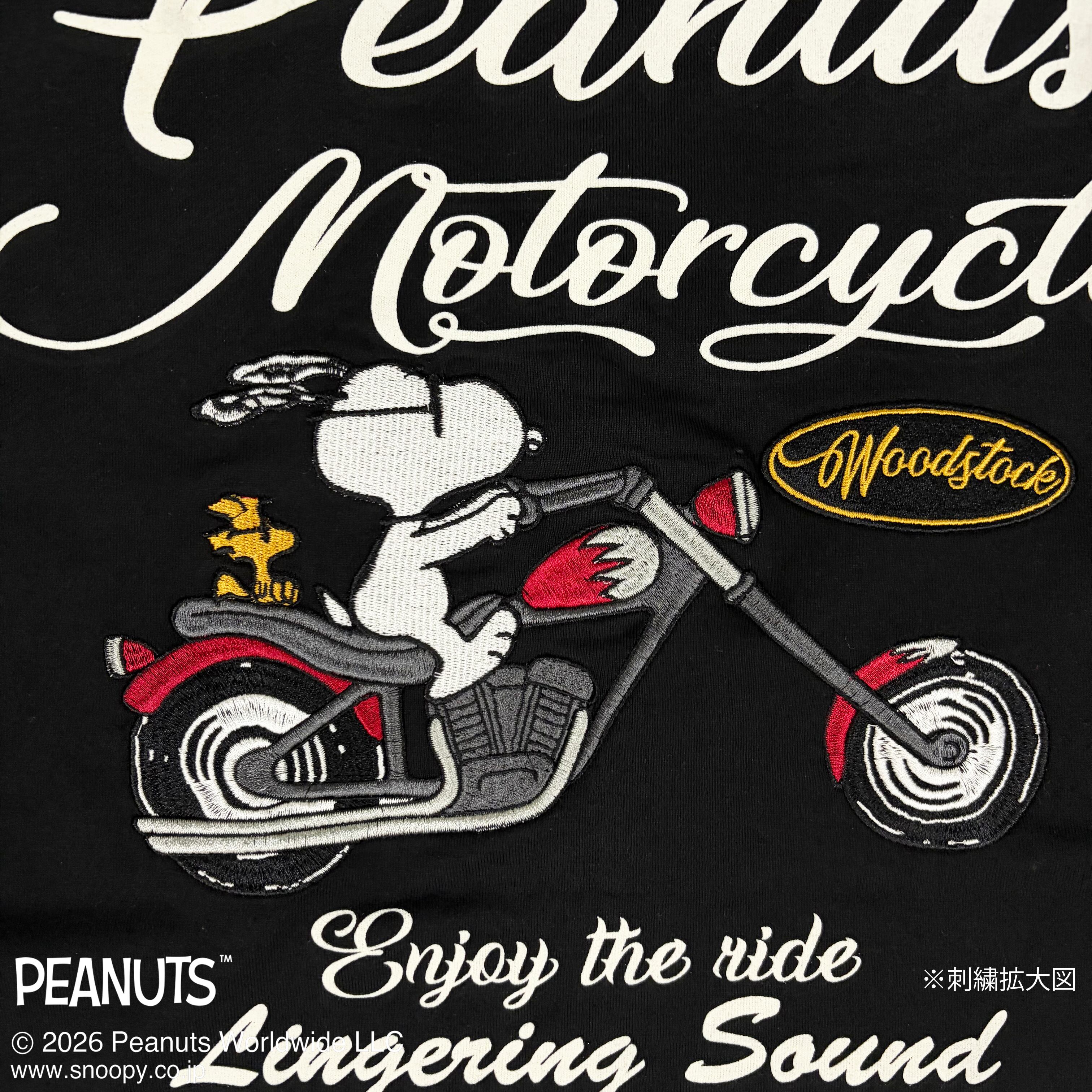 胸部にもツーリング姿のSNOOPYの刺繍が!